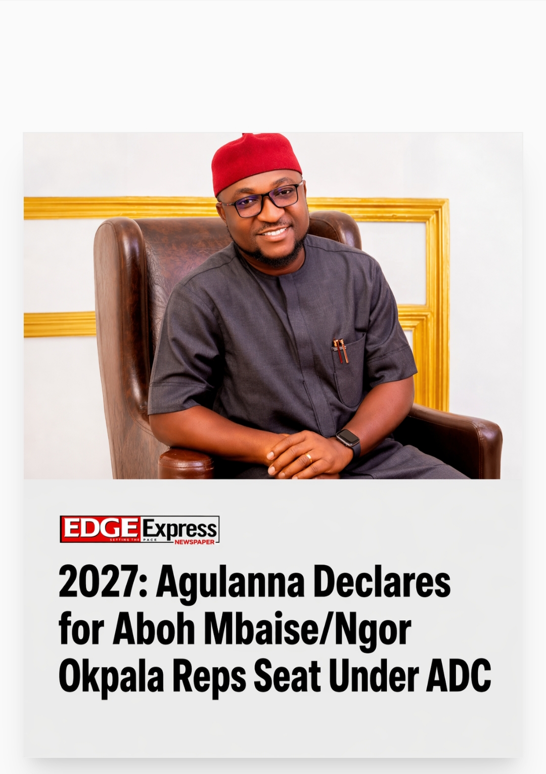 Engineer Dr. Albert Chibuzor Agulanna has formally declared his intention to contest for the Aboh Mbaise/Ngor Okpala Federal Constituency seat in the 2027 general elections under the platform of the African Democratic Congress (ADC), signalling early political realignments ahead of the polls.